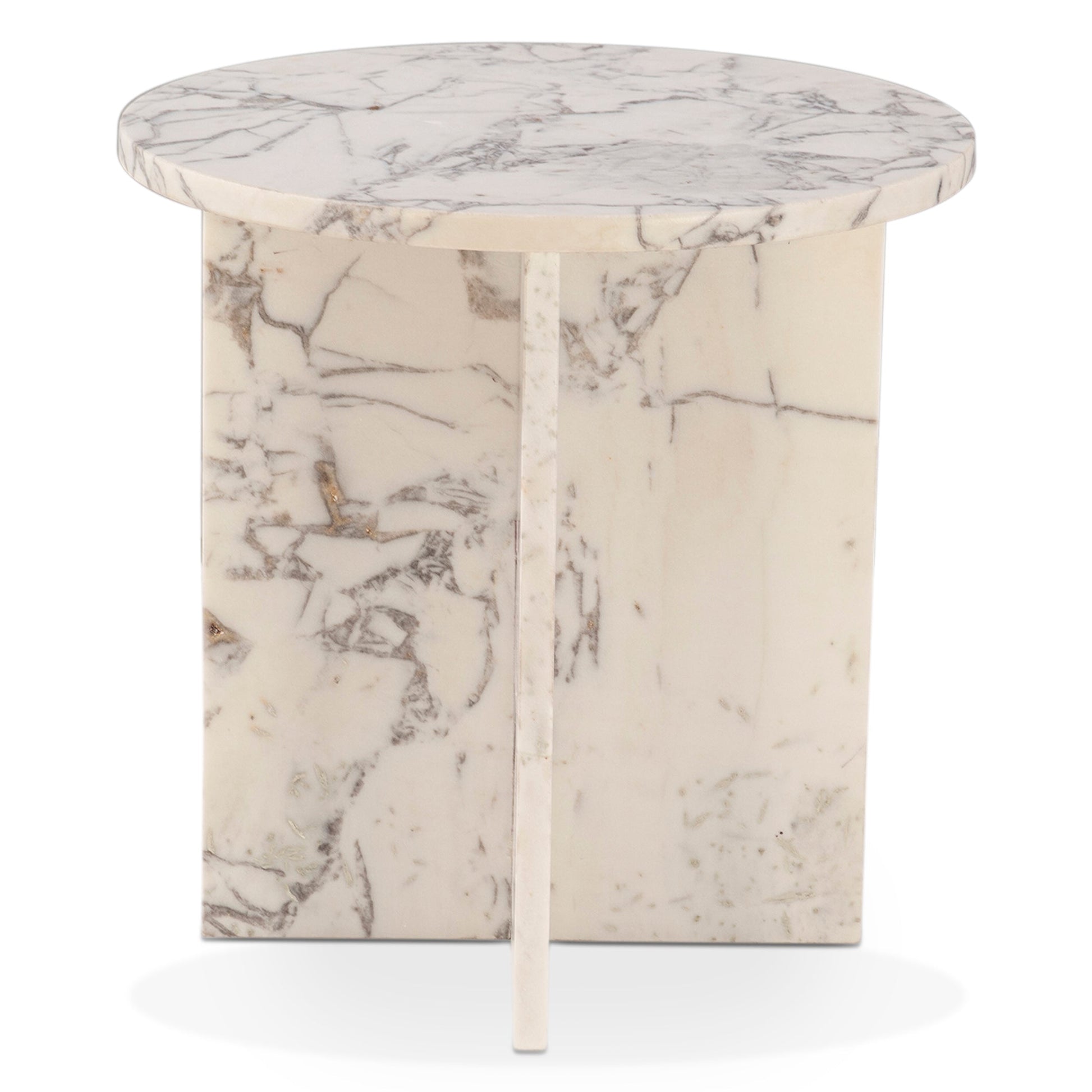 This side table showcases the quiet elegance of alabaster marble through its soft tonal variations and subtle veining. The honed stone surface rests on a clean, minimalist base, balancing natural warmth with modern design. Compact and versatile, it works beautifully beside a sofa, armchair, or bed, adding refinement and texture to any interior. Each piece is uniquely defined by the organic patterns of the marble, creating a one-of-a-kind statement of understated luxury.