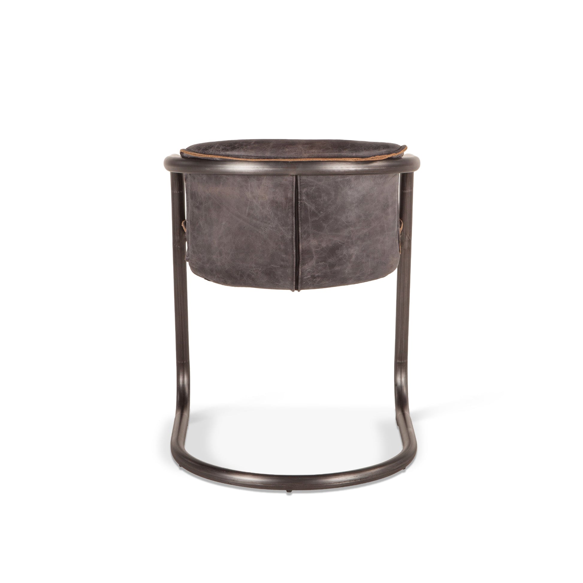 This dining chair embodies industrial sophistication through refined materials and streamlined design. Upholstered in supple antique ebony top-grain leather, it showcases raw edges and light distressing for a lived-in, vintage character. The sleek iron C-base finished in antique zinc provides strength while keeping the silhouette open and contemporary. Ideal for dining rooms, lofts, or boutique hospitality interiors, it delivers comfort, craftsmanship, and enduring modern appeal.