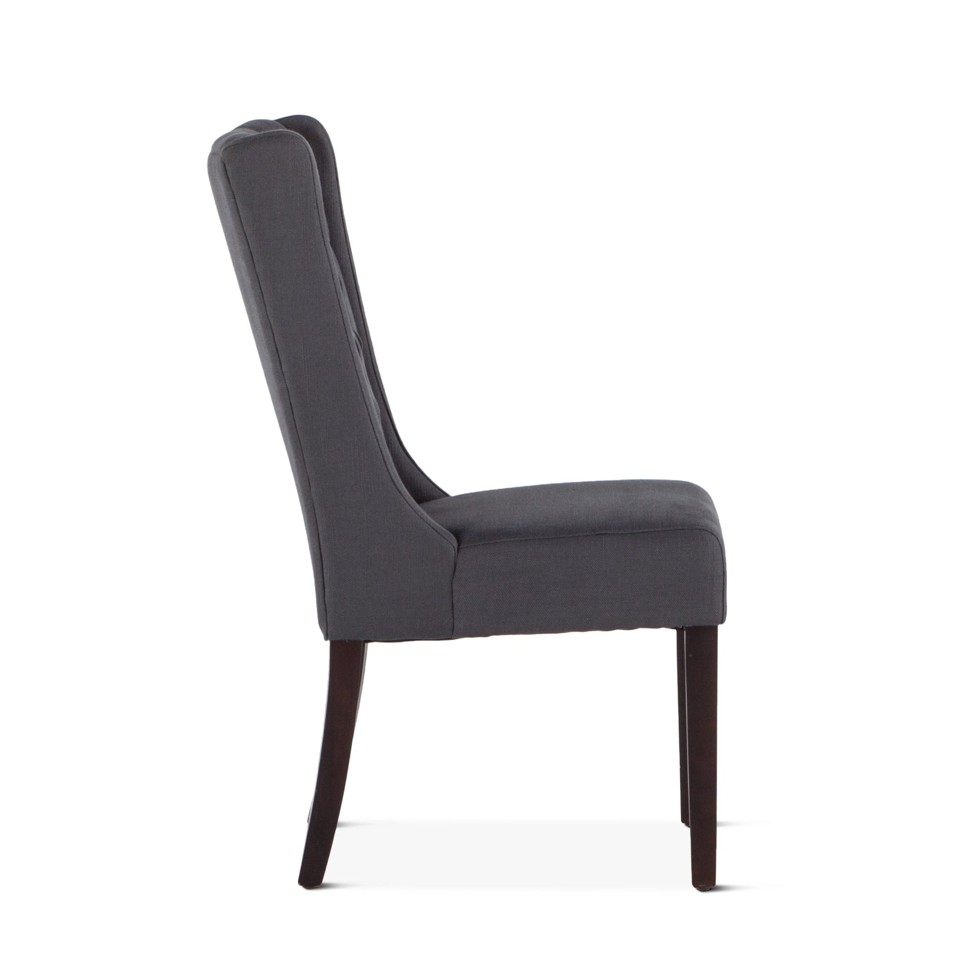 This dining chair combines classic tufted detailing with modern comfort. Built on a solid birch wood frame, it features a high wingback silhouette that provides both support and refined presence. The gray linen upholstery offers soft texture and timeless appeal, while dark brown legs anchor the design with contrast and strength. Perfect for dining rooms, lounges, or boutique interiors, it delivers lasting elegance and everyday comfort.