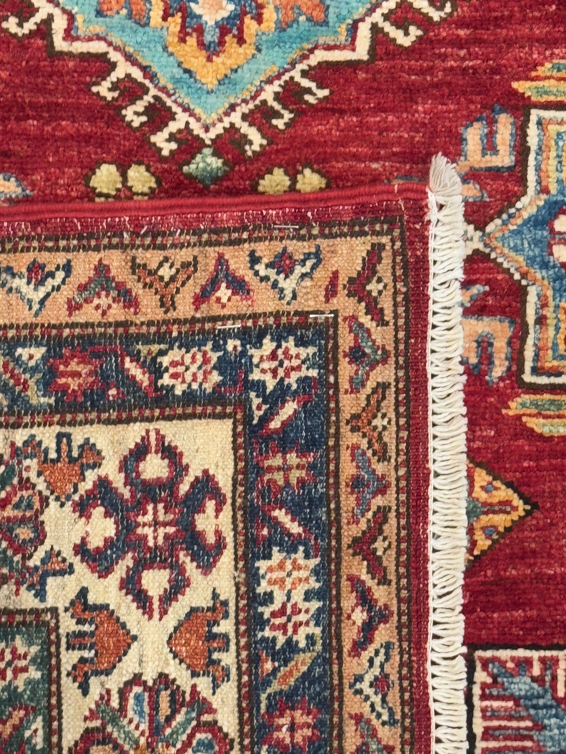 - Design: Geometric star and diamond medallions with multi-layered borders