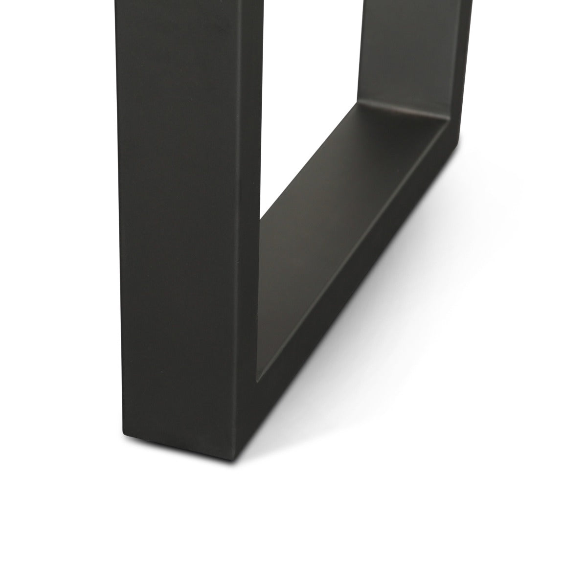 This dining table combines organic detail with contemporary structure. Crafted from acacia wood in a light sequoia finish, the tabletop is formed from two solid planks joined by visible bowtie key inlays that highlight craftsmanship and integrity. Smooth, naturally contoured edges preserve the character of the wood, while the gunmetal U-shaped iron base adds a bold, industrial counterpoint. Designed for modern interiors, it brings texture, warmth, and lasting durability to the dining experience.