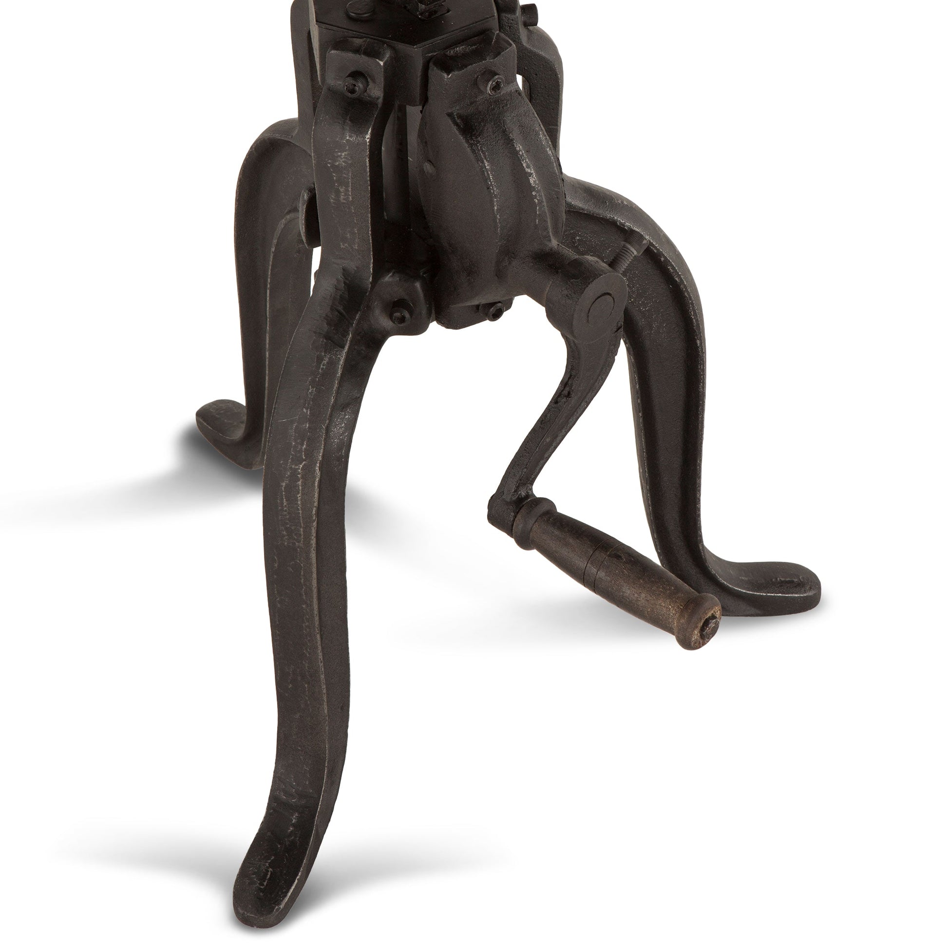 This side table blends industrial craftsmanship with vintage-inspired design. Made from reclaimed wood and iron, it features a functional hand-crank mechanism that adjusts the height for versatile use. The matte black finish complements the warm wood surface, creating a balanced mix of raw texture and refined detail. Compact and adaptable, it serves beautifully as a side, accent, or display table in loft, studio, or contemporary interiors.