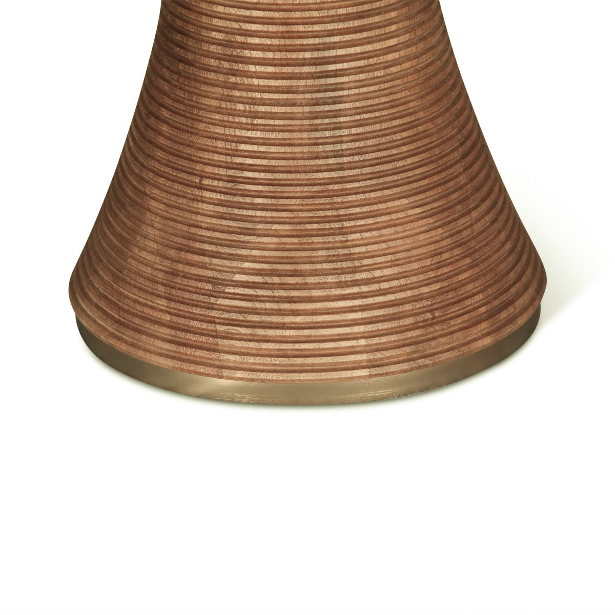 This dining table blends modern craftsmanship with timeless warmth. Made from solid mango wood, it features a striking fluted pedestal base accented with subtle metal detailing at the bottom for a refined, architectural look. The round top encourages intimate dining and conversation, while the natural brown finish highlights the organic beauty of the wood grain. Perfect for contemporary or transitional interiors, it serves as a sculptural centerpiece that balances texture, form, and function.