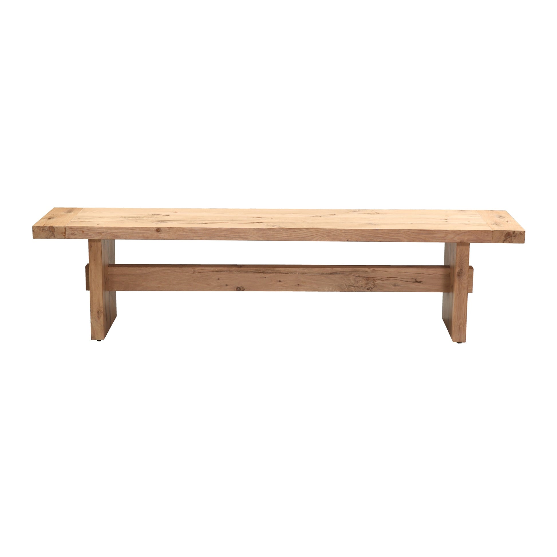 This bench blends rustic charm with refined craftsmanship. Made from solid oak in a natural distressed finish, it features exposed through-tenon joinery that highlights its artisanal construction. The warm tone and visible grain give each piece depth and texture, while the clean lines maintain a transitional appeal. Perfect for dining rooms, entryways, or open living spaces, it brings authenticity, strength, and timeless style to any setting.