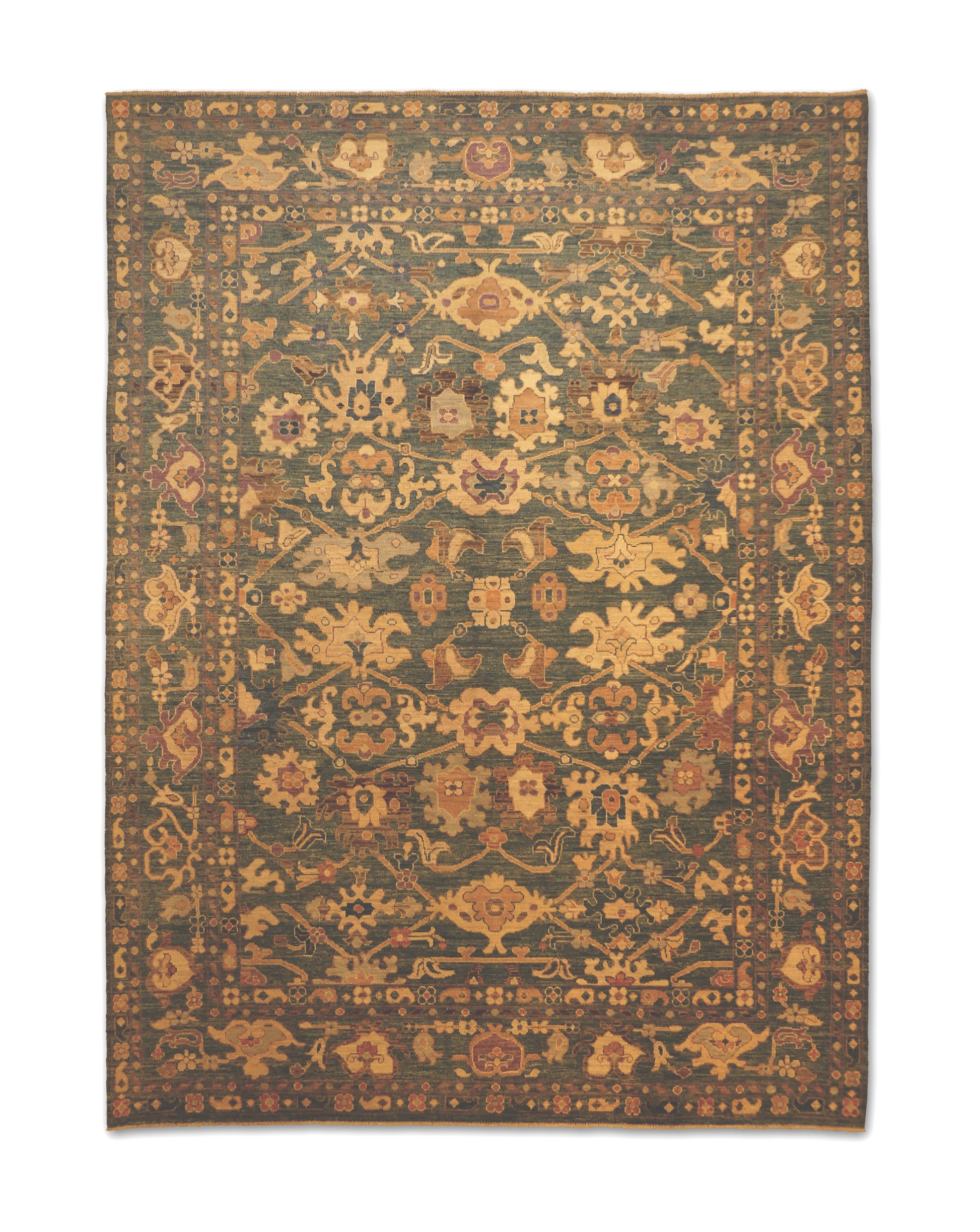 - Design: Large-scale floral and palmette motifs with wide floral border