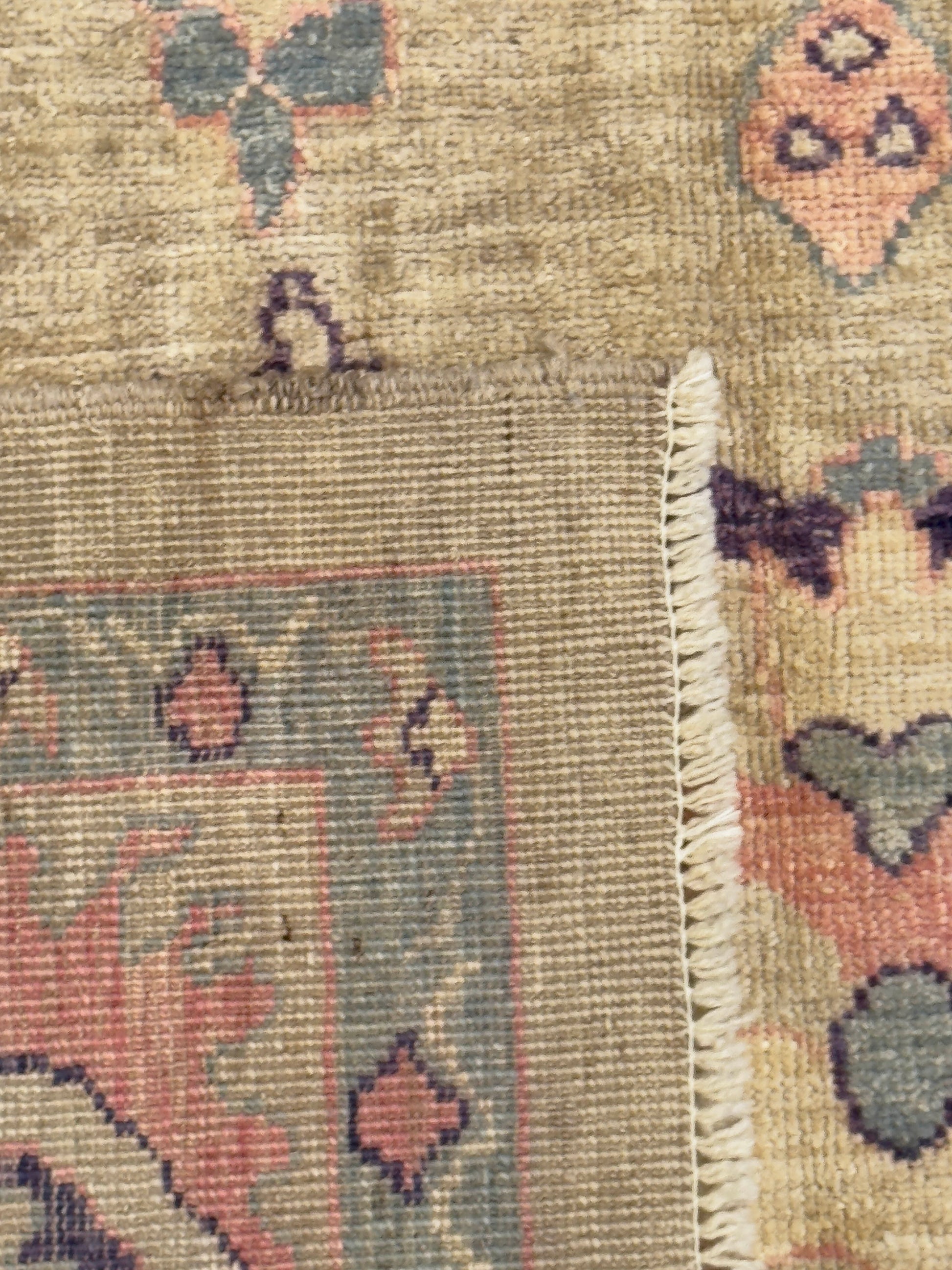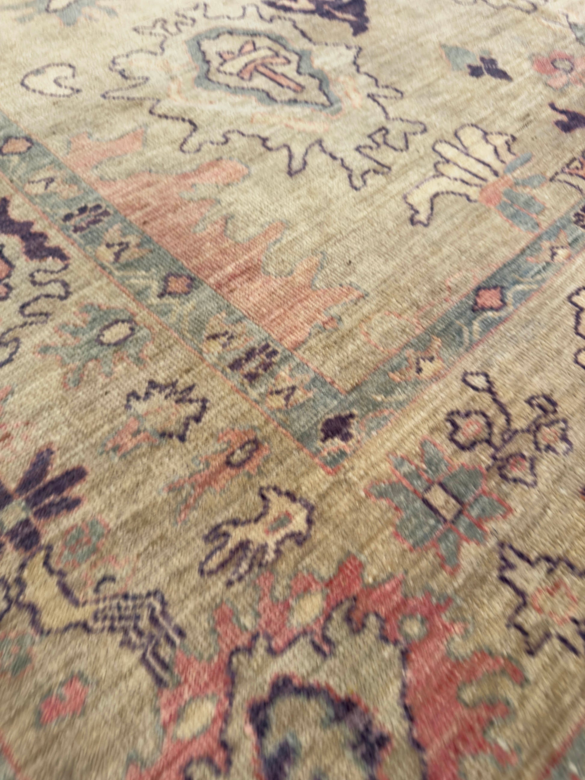 - Design: Large-scale floral and geometric motifs with a bordered layout