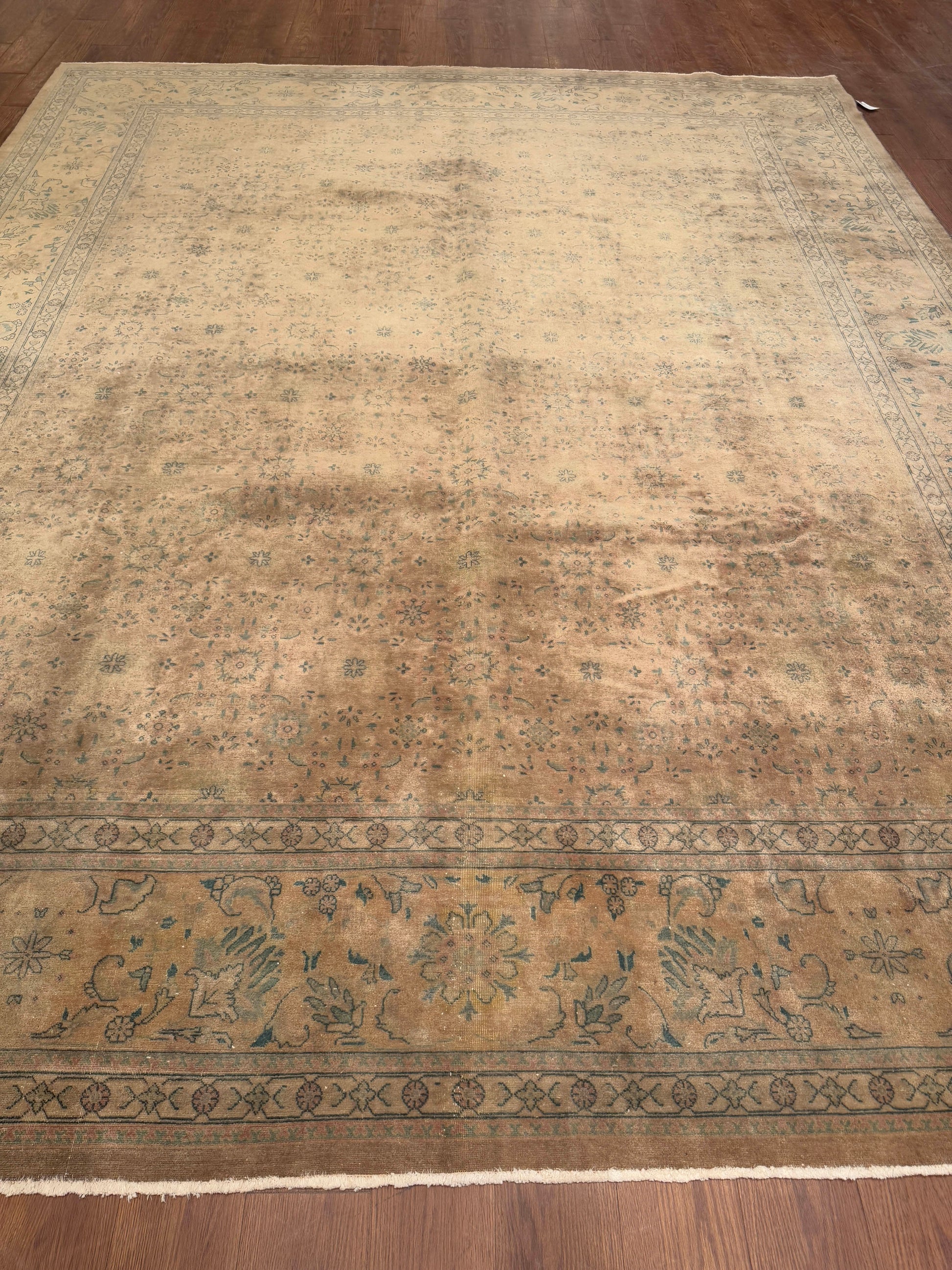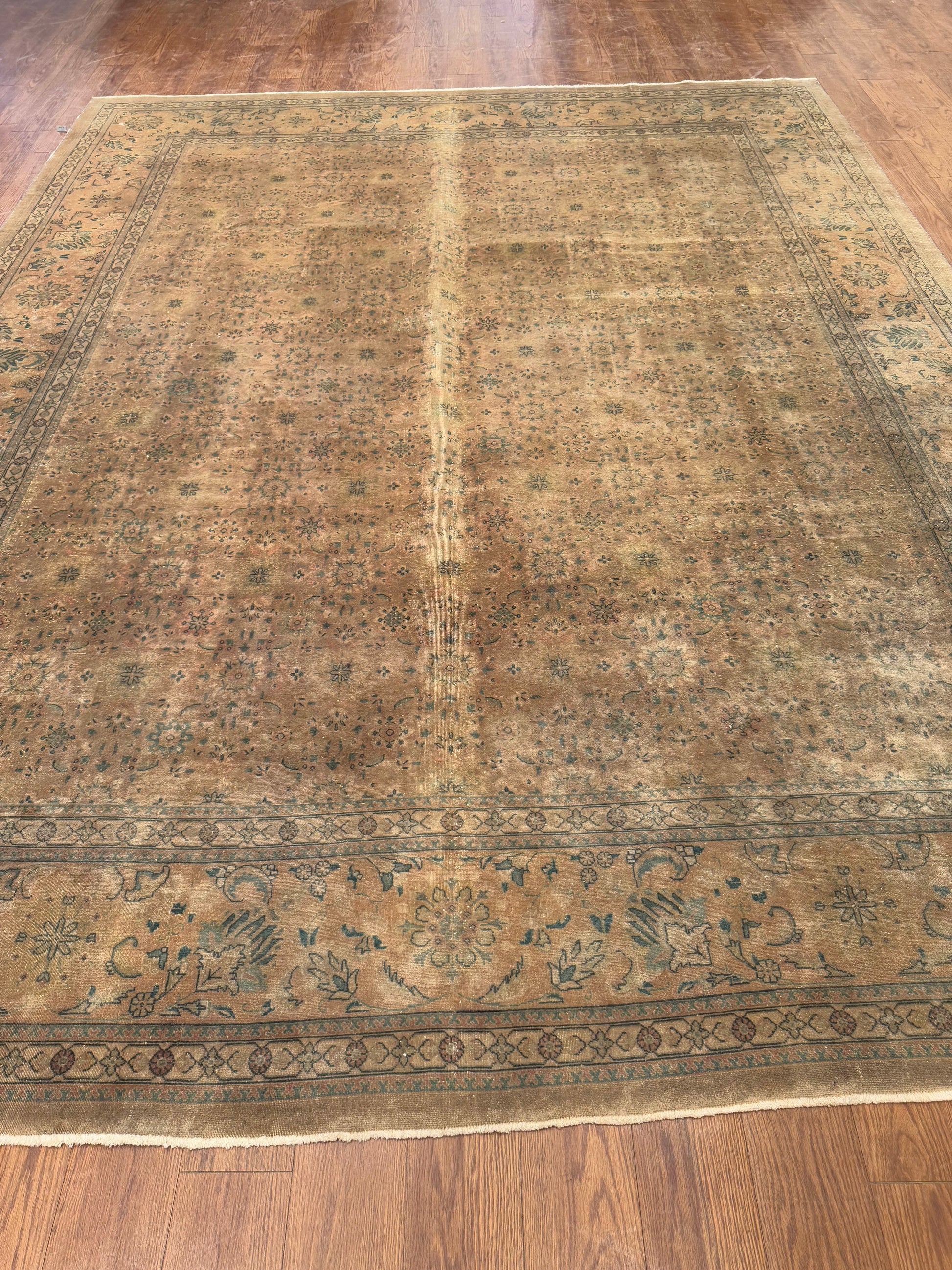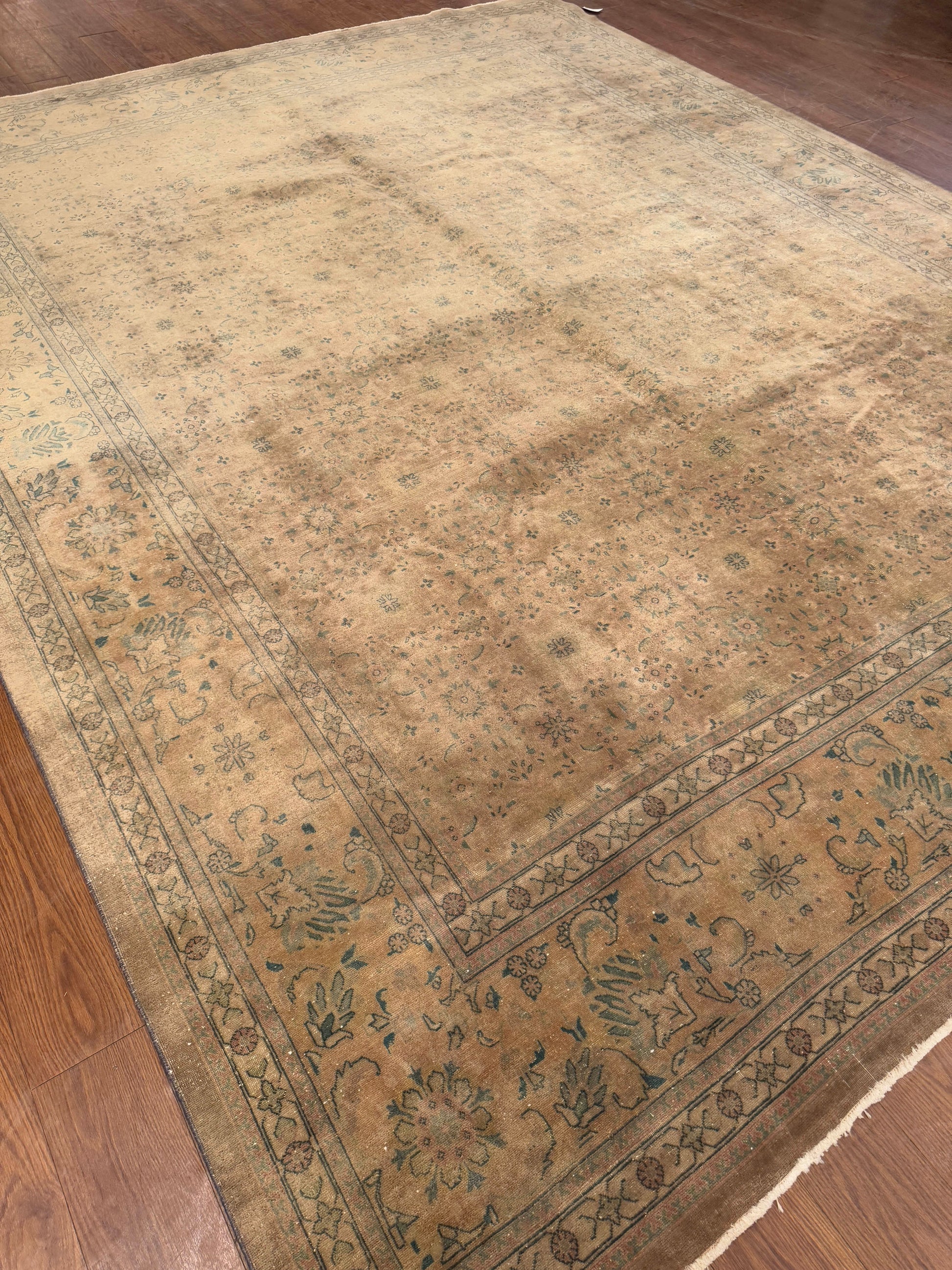 This elegant handwoven rug features an allover Herati-inspired pattern, delicately arranged in soft, repeating floral and geometric motifs. Muted earthy tones of beige, sage green, and faded gold give it a refined, timeworn character, while the subtle abrash adds depth and texture. Its understated sophistication makes it an easy fit for both classic and transitional interiors.