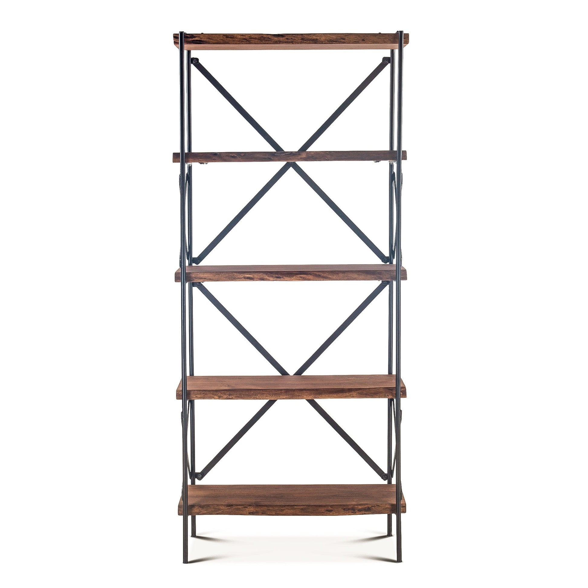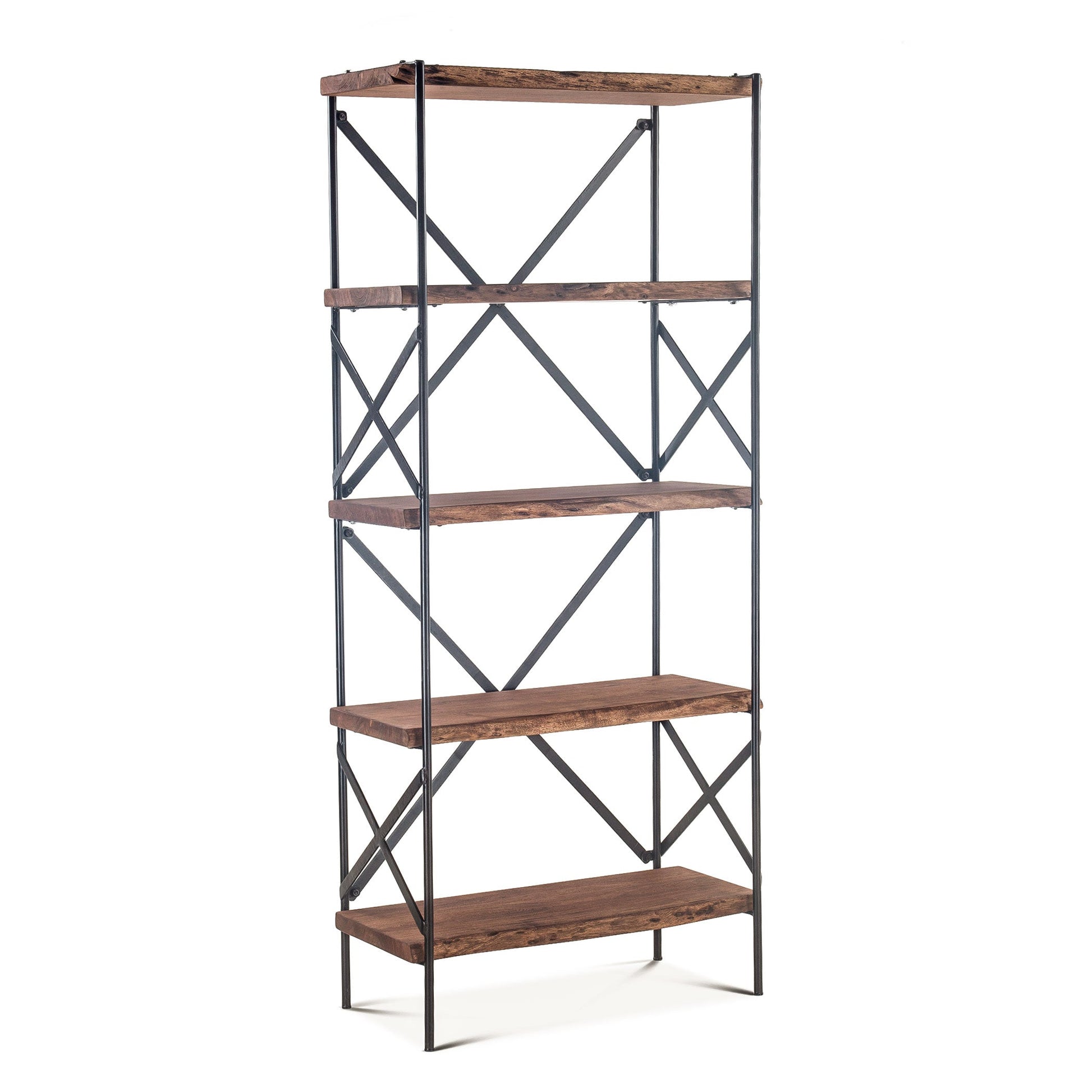 This bookshelf combines organic warmth with industrial strength in a timeless design. Handcrafted from solid acacia wood in a raw walnut finish, it features natural live-edge detailing that highlights the unique grain and character of each piece. The shelves rest on a hand-forged cast iron frame in antique zinc, blending rustic craftsmanship with modern structure. Perfect for living rooms, offices, or open-plan interiors, it brings authenticity, texture, and balance to any space.