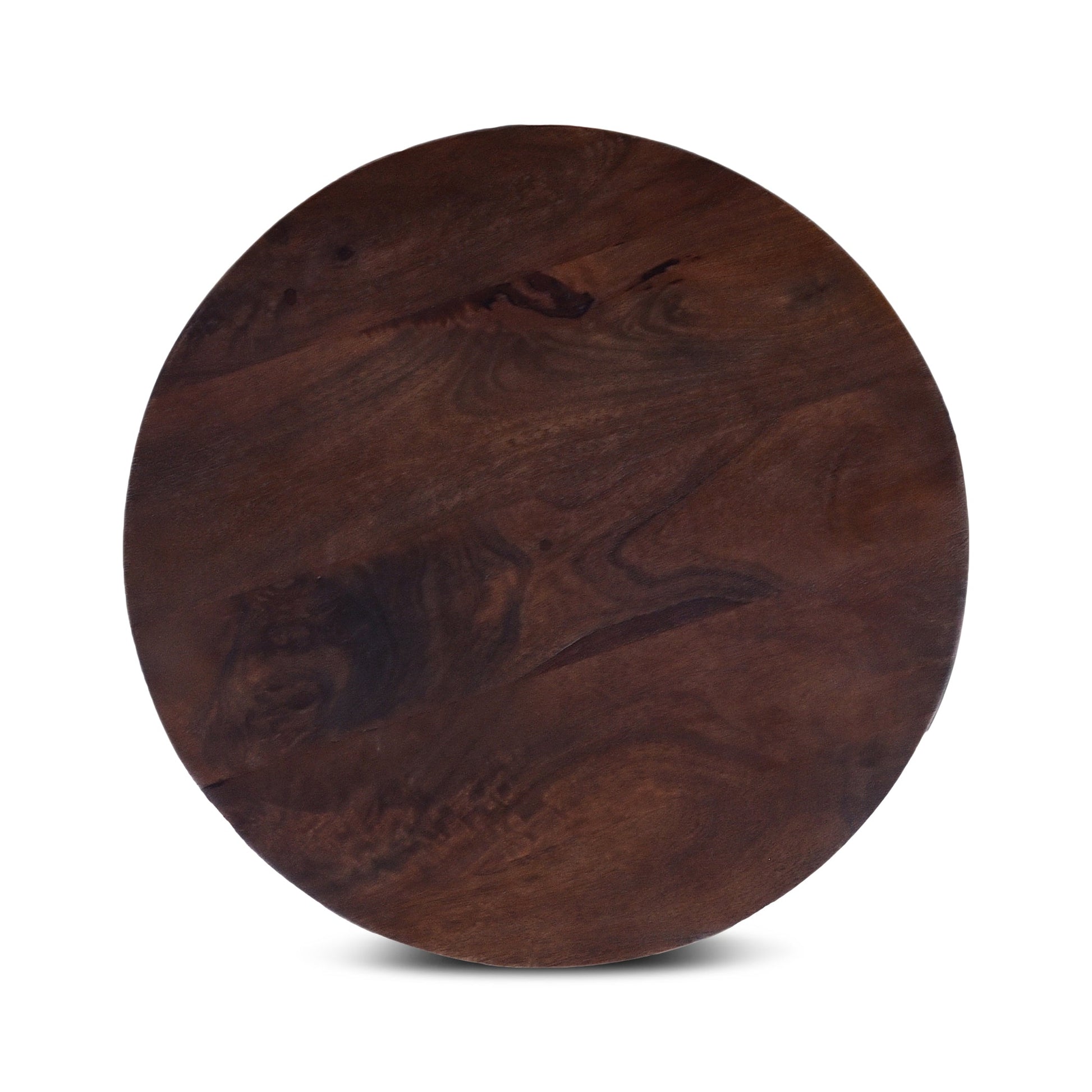 This accent table celebrates handcrafted design with its sculptural spool-shaped base and warm royal brown finish. Made from solid mango wood, each piece features natural variations in tone and texture that emphasize its artisanal character. Compact and versatile, it serves beautifully beside a sofa, chair, or as a standalone decorative piece. The rich finish and organic form lend warmth and depth to both rustic and modern interiors.