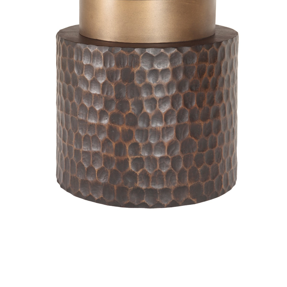 This round dining table blends modern craftsmanship with artisanal character. Made from solid mango wood, it features intricate hand-carved details and a bold two-tone finish that highlights the natural movement of the grain. The antique bronze accents add depth and contrast, while a catalyzed water-based coating provides lasting protection and a soft sheen. Designed for spaces that value warmth, texture, and craftsmanship, this table offers timeless beauty with a contemporary edge.