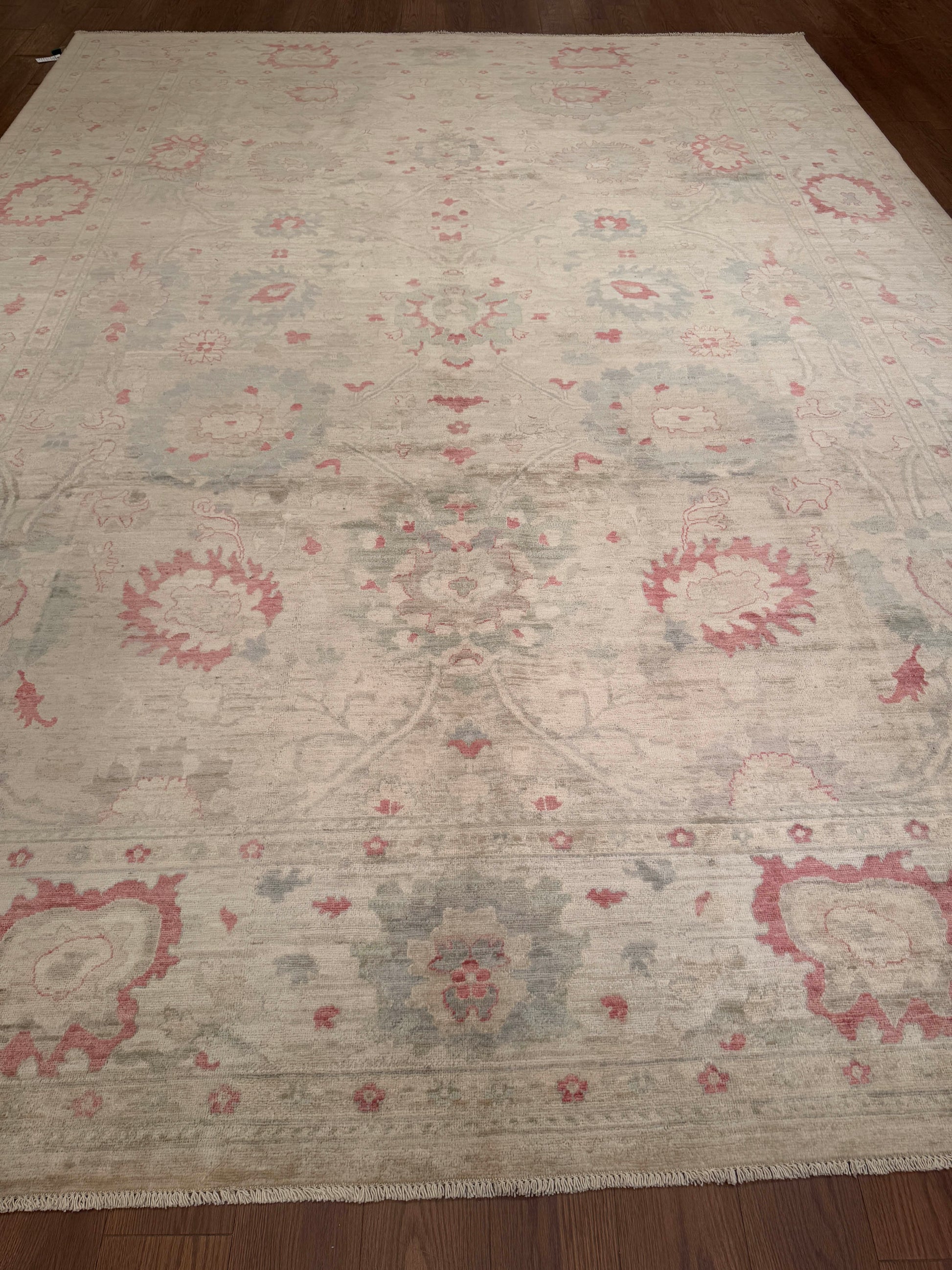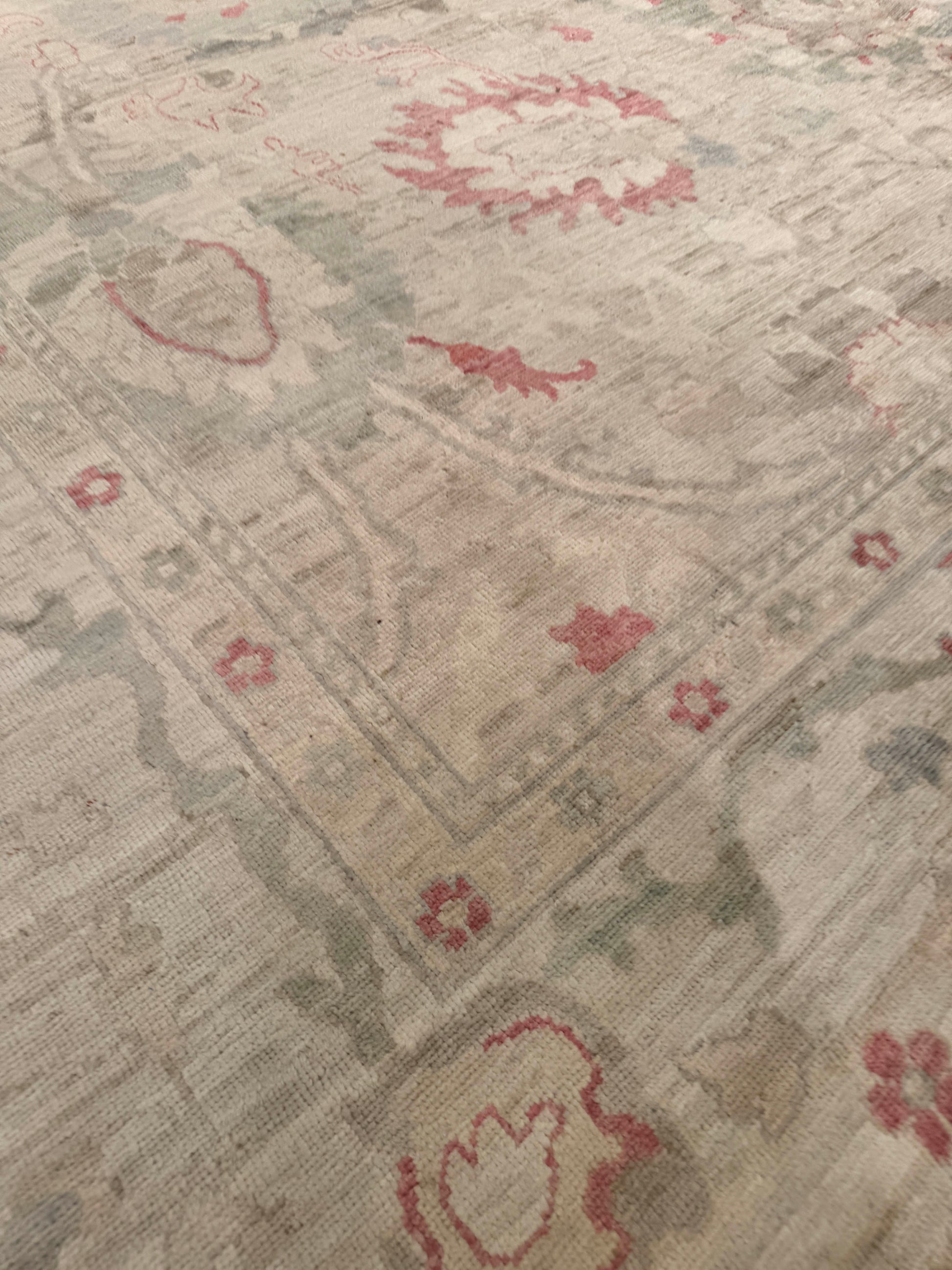 Soft and serene, this handwoven rug exudes understated elegance through its muted pastel palette and delicate floral motifs. The gentle blend of blush pink, ivory, and subtle sage tones creates a calming, ethereal presence that enhances any space with a touch of sophistication. Its faded, time-worn appearance evokes a sense of antique charm while maintaining a modern lightness ideal for contemporary interiors.