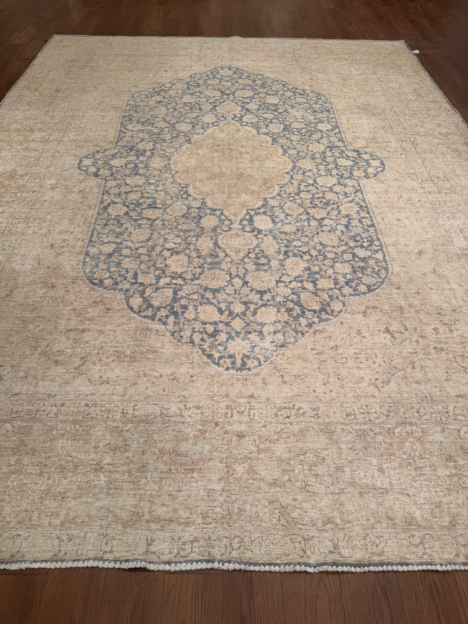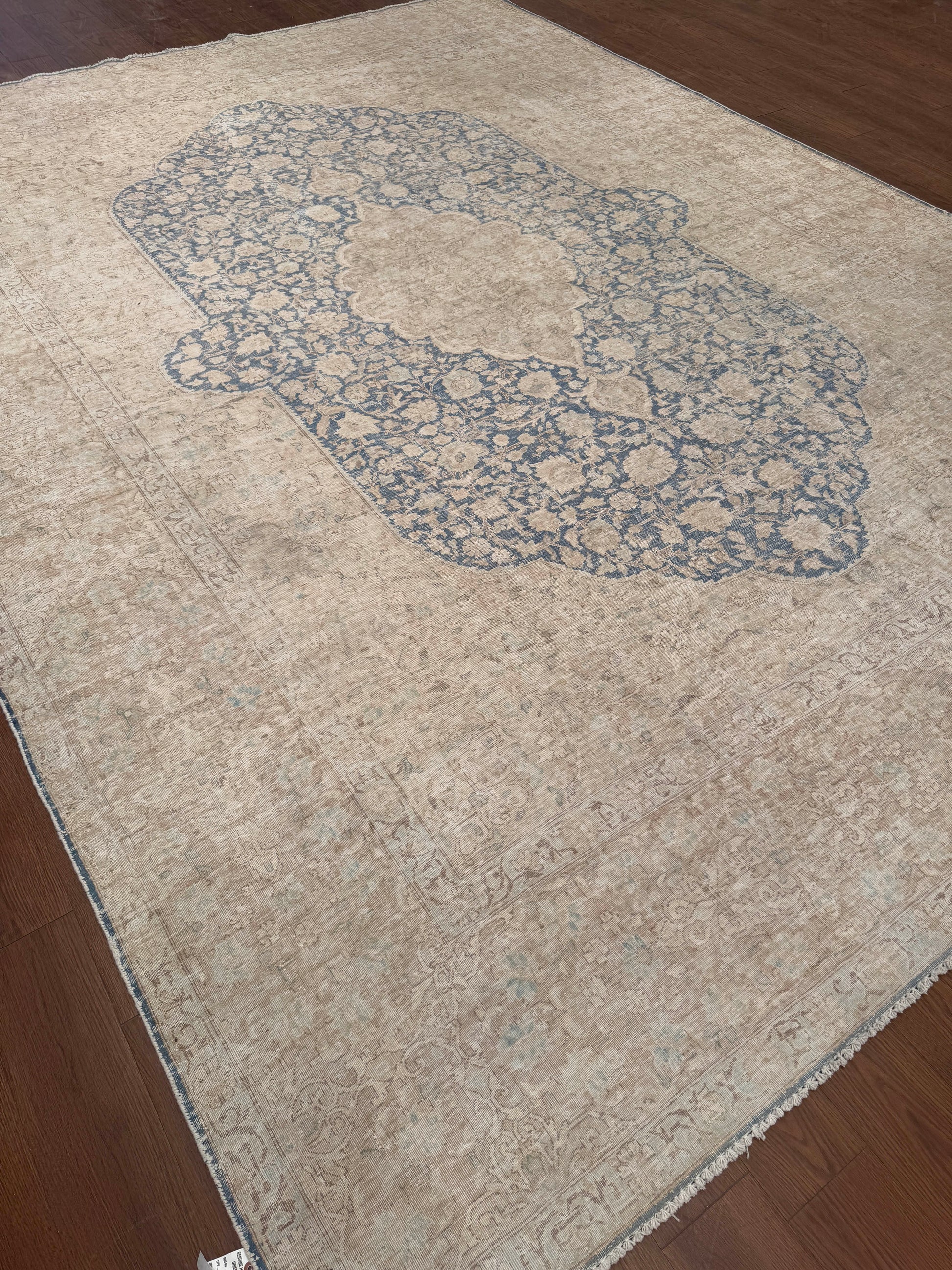 - Design: Central lozenge medallion with floral detailing and open field composition