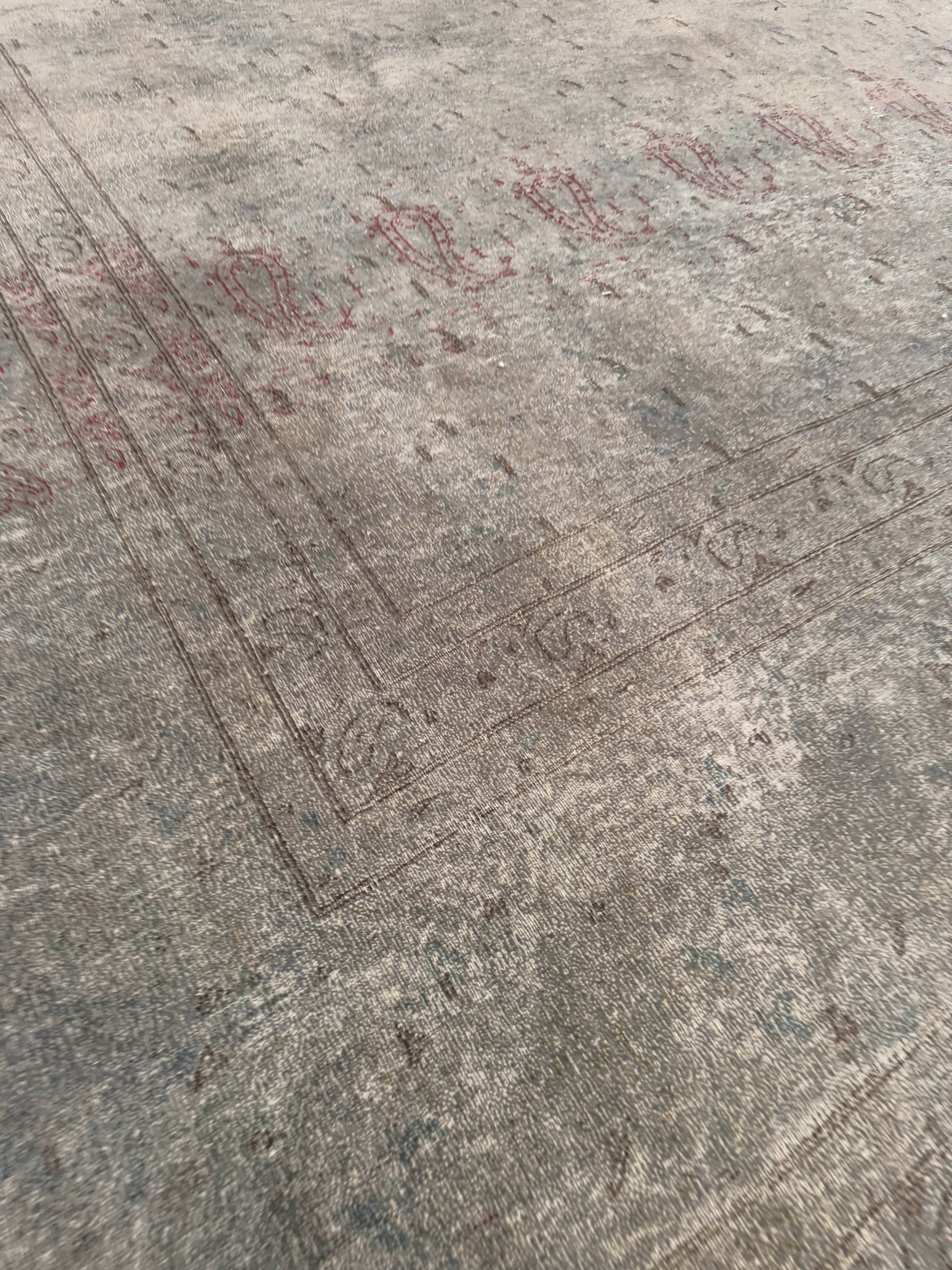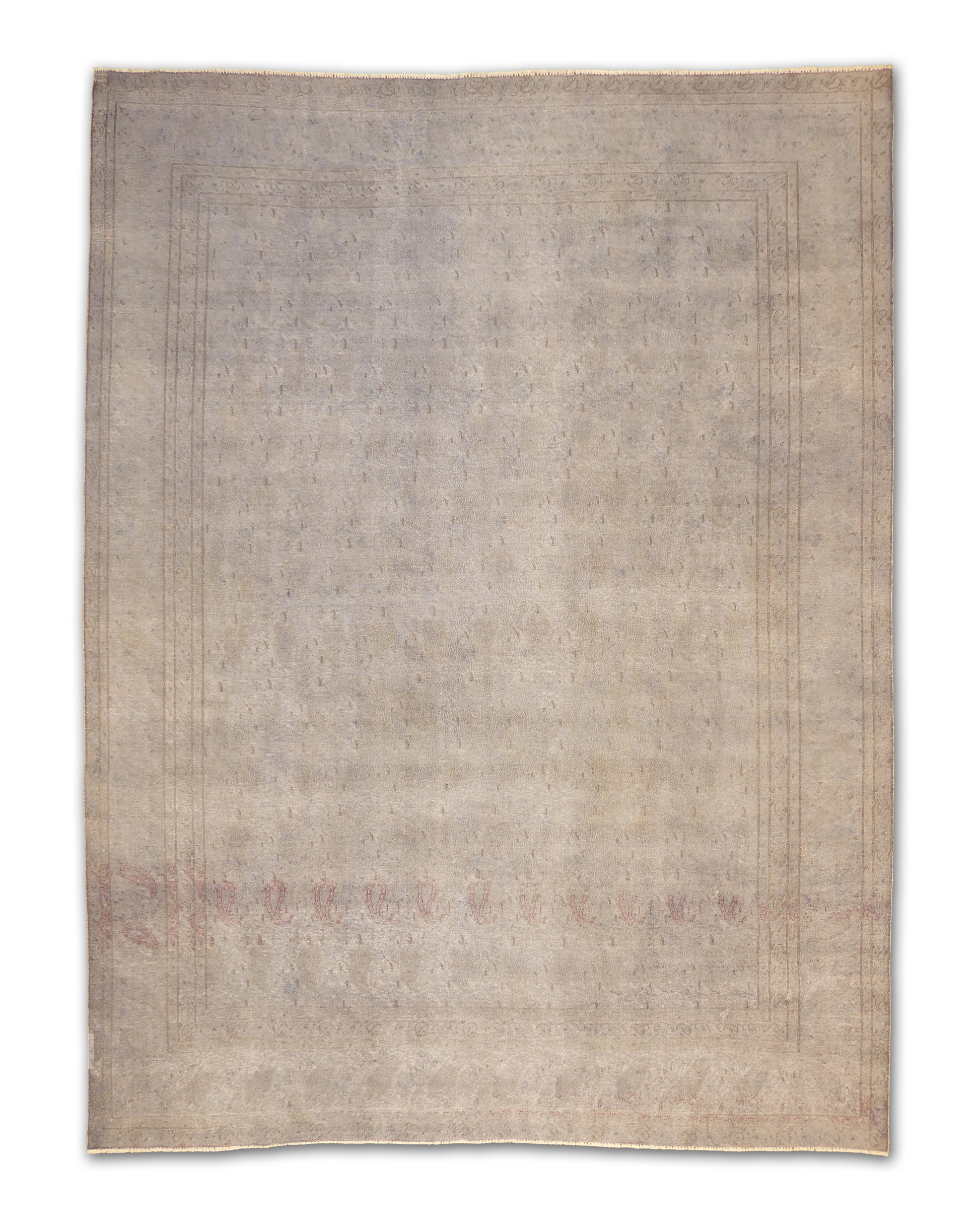 - Design: All-over tone-on-tone with subtle abrash and linear borders