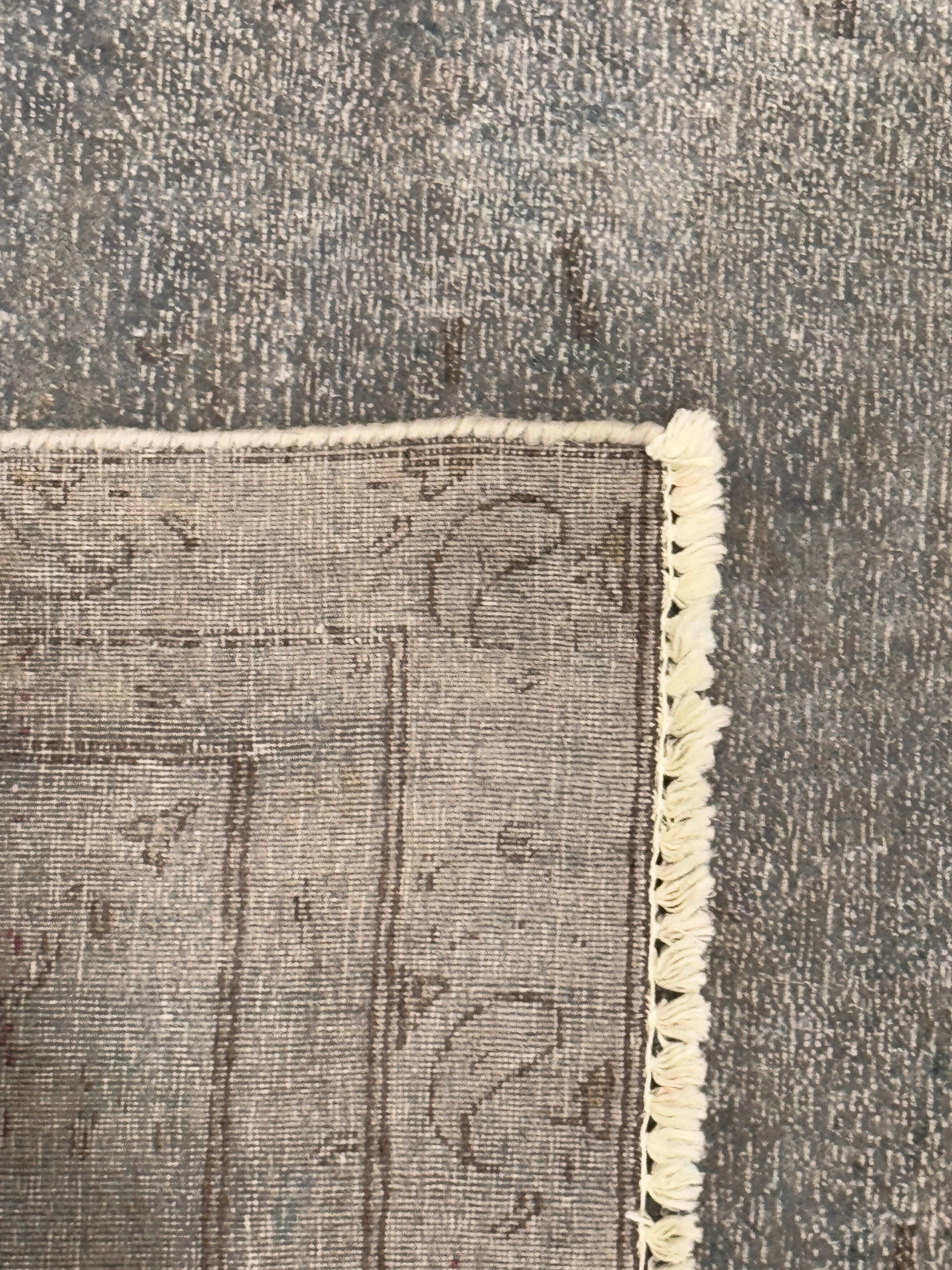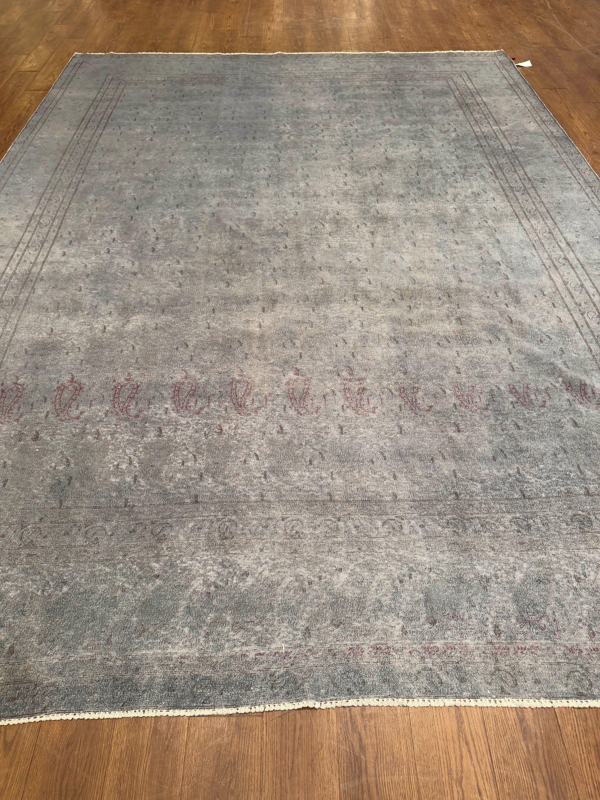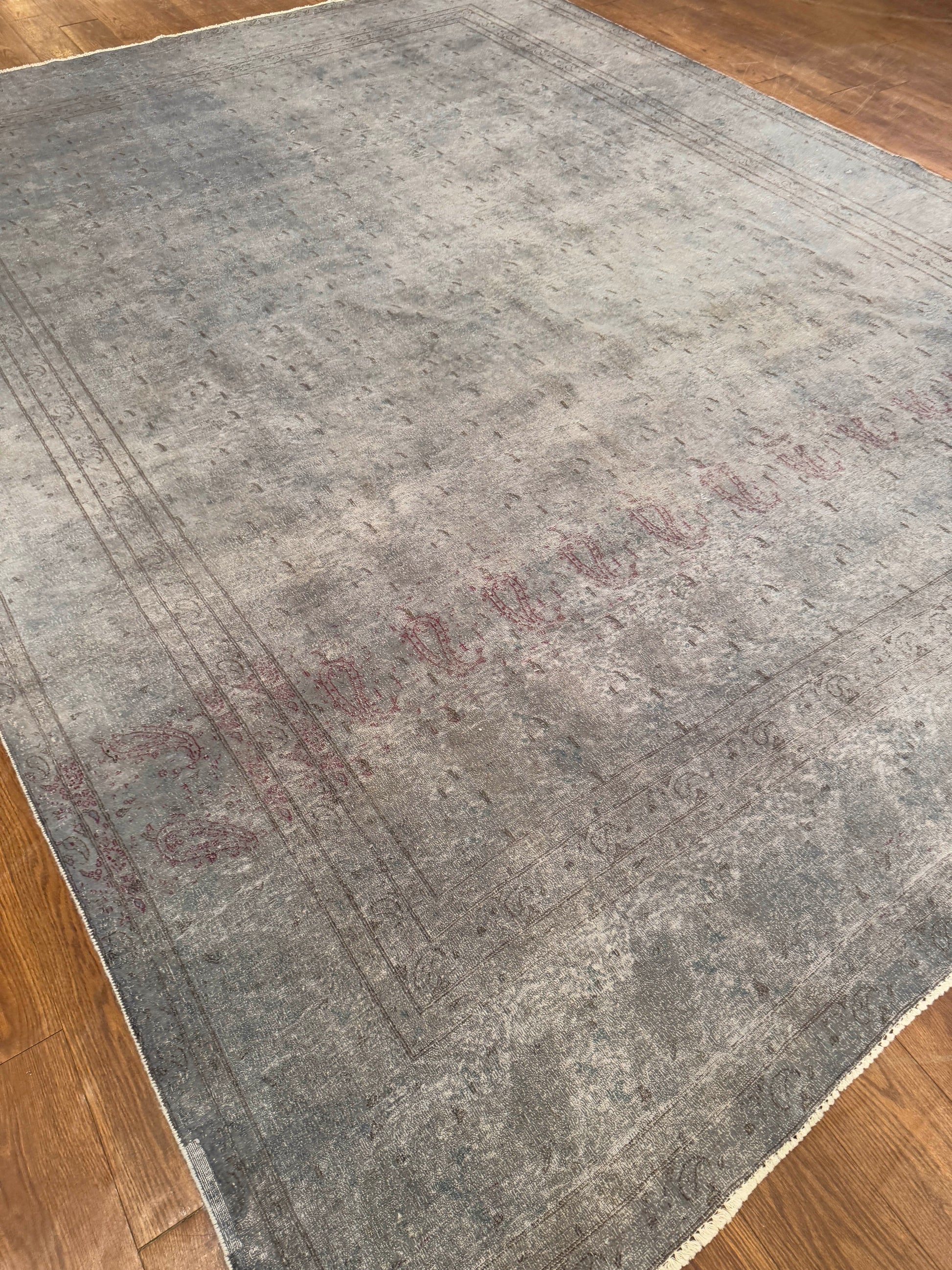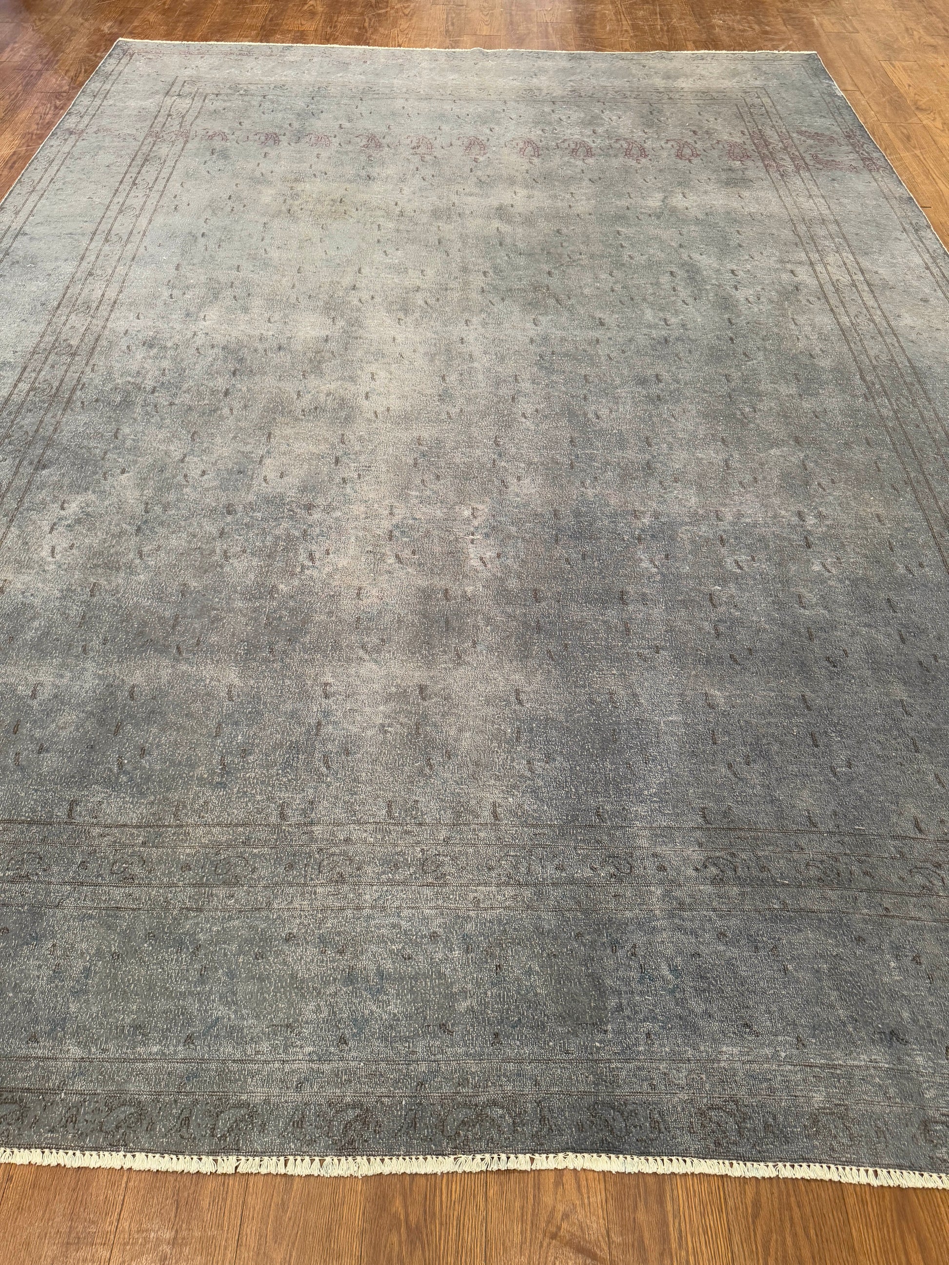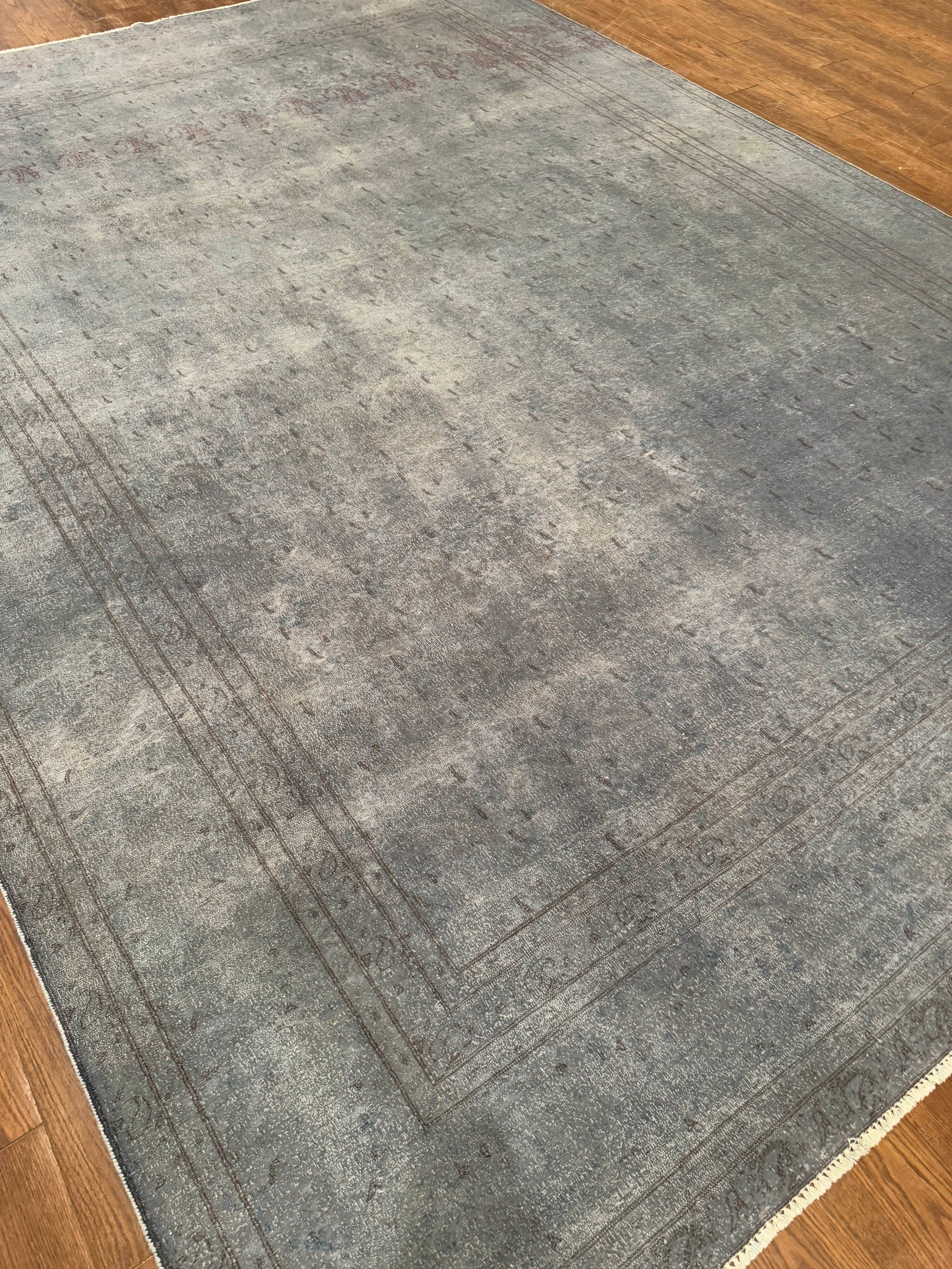 This refined handwoven rug features an understated all-over tone-on-tone design with a subtle abrash effect, creating a gentle gradient across the field. Minimal linear borders frame the composition, giving structure while maintaining a clean and modern feel. Soft grey-blue and muted charcoal tones evoke a calming and versatile aesthetic that works seamlessly in both contemporary and transitional spaces.