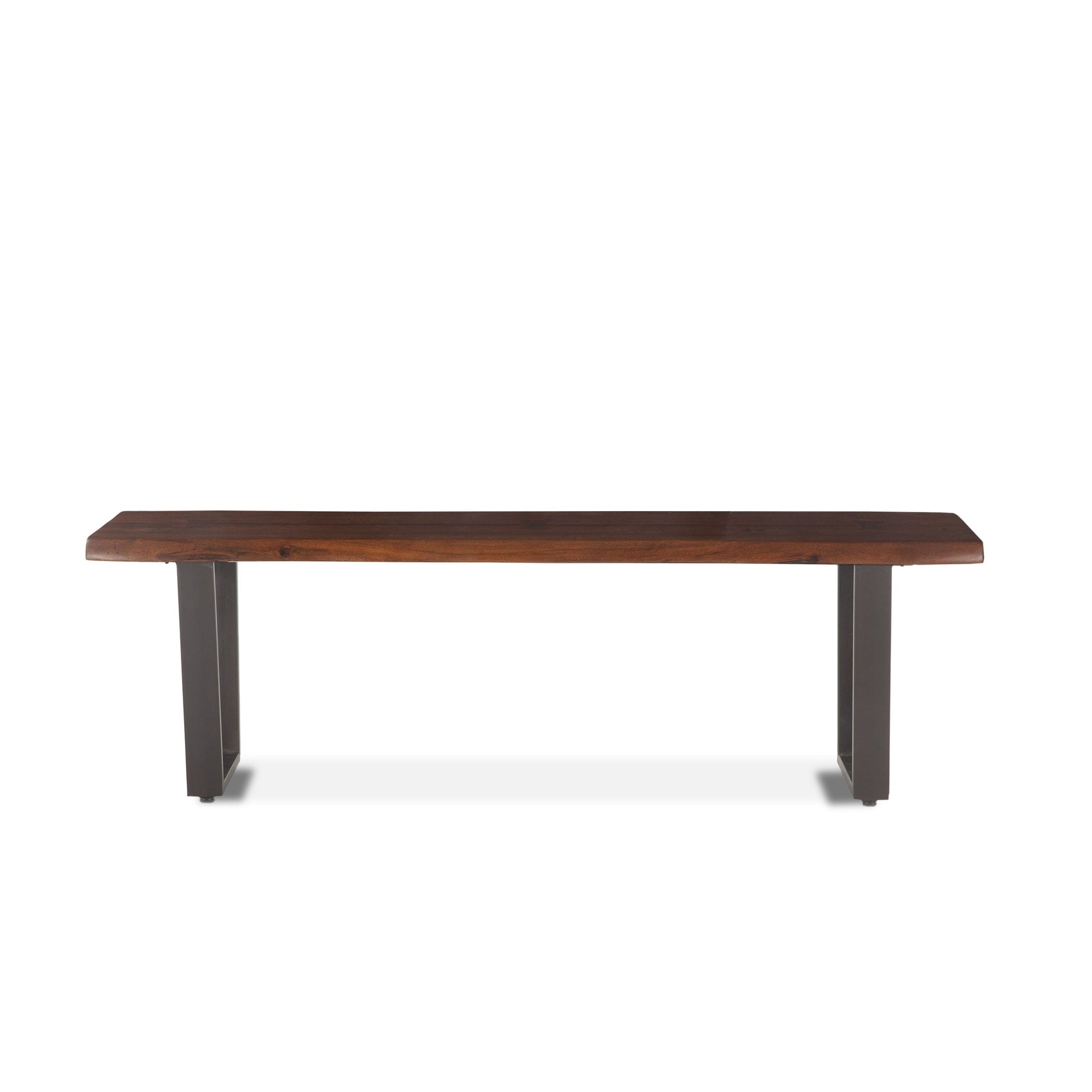 This bench brings together modern industrial style and organic warmth. Crafted from solid acacia wood in a rich walnut finish, it features a hand-finished faux live edge that highlights the wood’s natural grain and depth. The sleek black iron base adds structure and contrast, giving the design a balanced, sculptural feel. Perfect for dining rooms, entryways, or loft interiors, it offers durability, texture, and timeless character.